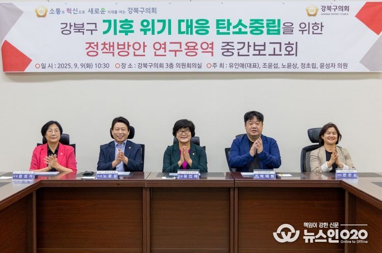 (뉴스인020 = 김성길 기자) 강북구의회 의원연구단체인 ‘강북구 기후위기 대응 탄소중립을 위한 연구회’ (대표의원 유인애)는 지난 9월 9일 의회 3층 의원회의실에서 중간보고회를 열었다.