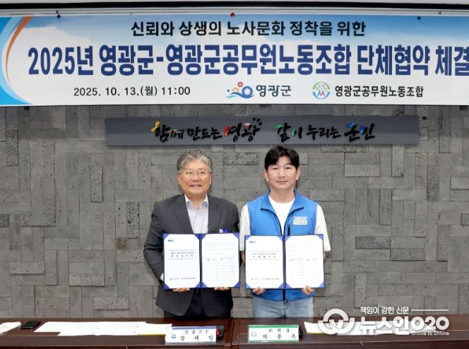 (뉴스인020 = 김성길 기자) 영광군은 지난 10월 13일 군청 2층 소회의실에서 영광군공무원노동조합과 “2025년 단체협약식”을 체결했다.