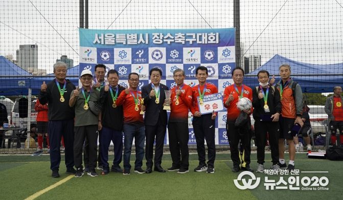 (뉴스인020 = 김성길 기자) 서울특별시의회 도시안전건설위원회 부위원장으로 의정활동하고 있는 김용호 시의원(국민의힘, 용산1)은 지난 10월 11일과 12일, 성동구 살곶이체육공원과 응봉축구장, 중랑물재생센터 축구장에서 열린 ‘서울시 7080 장수축구대회’에 참석하여 개회식에서는 축하 인사를 전하고, 폐막식에서는 70대B조 우승팀에게 직접 트로피와 우승컵을 수여했다.