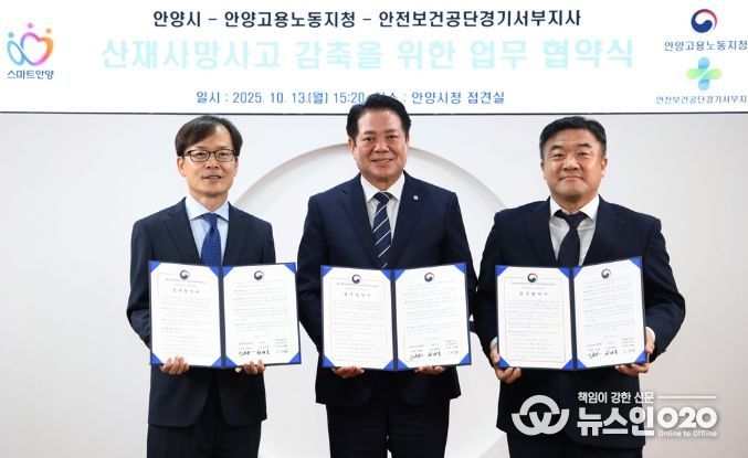 (뉴스인020 = 김성길 기자) 안양시가 13일 고용노동부 안양지청, 안전보건공단 경기서부지사와 산재사망사고 감축을 위한 업무협약을 체결했다.