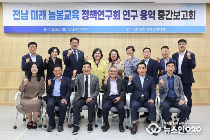 (뉴스인020 = 김성길 기자) 전라남도 의원연구단체 전남 미래형 늘봄교육 정책연구회(대표의원 정철)는 10월 13일 전라남도의회 중회의실에서 '전남 미래형 늘봄교육 모델개발과 학교 내외 안전사고 예방 방안 연구' 정책연구용역 중간보고회를 개최했다.