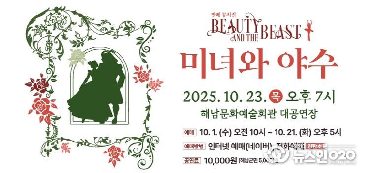 (뉴스인020 = 김성길 기자) 해남군은 오는 10월 23일 오후 7시 해남문화예술회관 대공연장에서 발레뮤지컬 ‘미녀와 야수’공연을 선보인다.
