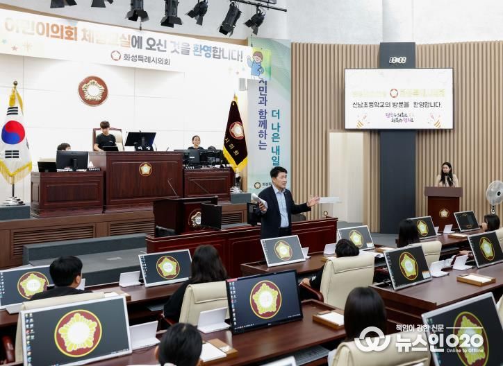 (뉴스인020 = 김성길 기자) 화성특례시의회는 13일, 남양읍에 위치한 신남초등학교 학생들을 대상으로 ‘어린이의회 체험 교실’을 운영했다.