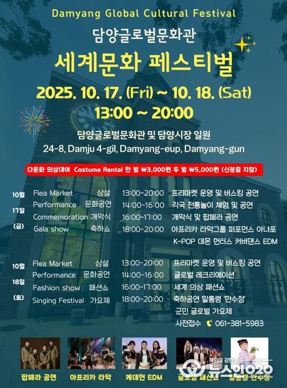(뉴스인020 = 김성길 기자) 담양군은 오는 17일부터 이틀간 담양글로벌문화관과 담양오일시장 일원에서 ‘세계문화페스티벌’을 연다고 밝혔다.