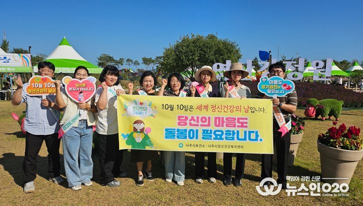 (뉴스인020 = 김성길 기자) 전라남도 나주시가 10월 10일 ‘세계 정신건강의 날’을 맞아 ‘2025 나주영산강축제’ 행사장에서 시민과 관광객을 대상으로 정신건강 인식 개선 캠페인을 진행했다.