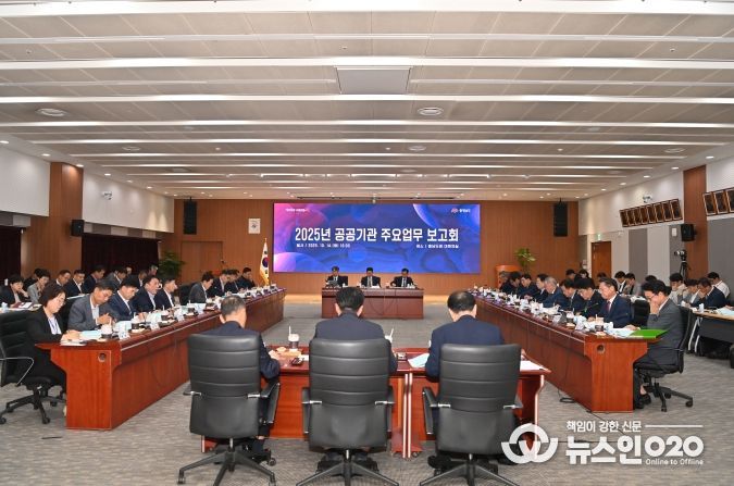 (뉴스인020 = 김성길 기자) 충남도는 14일 도청 대회의실에서 김태흠 지사와 행정부지사, 실·국장, 공공기관장 등 20여 명이 참석한 가운데, ‘2025년 공공기관장 주요 업무 보고회’를 개최했다.