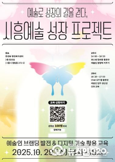 (뉴스인020 = 김성길 기자) 시흥시는 오는 10월 29일 연성동 행정복지센터 3층 회의실에서 문화예술인 및 문화예술에 관심 있는 시민을 대상으로 ‘예술로 성장의 길을 걷다, 시흥예술 성장 프로젝트’를 개최한다.