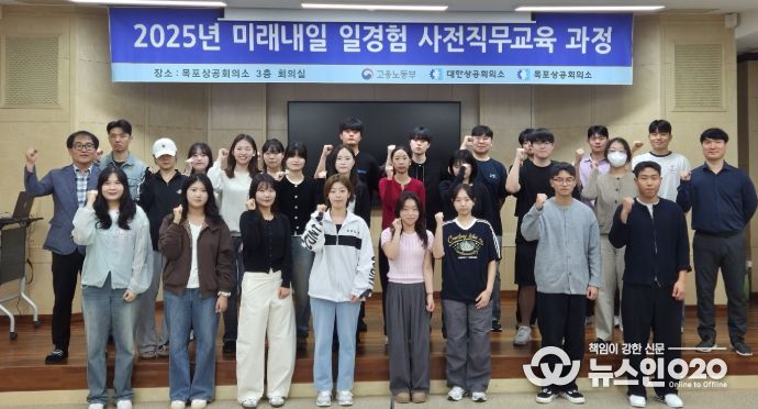 (뉴스인020 = 김성길 기자) 목포상공회의소는 고용노동부에서 주관하는 “2025년 미래내일 일경험 지원사업 사전직무교육과정” 개강식을 10월 15일 오후 13시 목포상공회의소 3층 대회의실에서 개최했다.