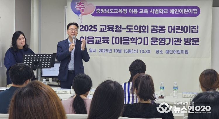 (뉴스인020 = 김성길 기자) 충남교육청은 15일, 충청남도의회 신한철 의원과 함께 천안시 예인어린이집을 대상으로 어린이집 이음교육(이음학기) 운영 현장을 방문했다.