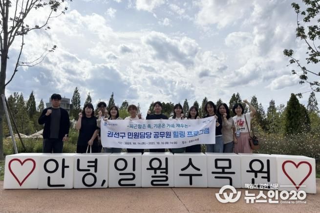 (뉴스인020 = 기자) 수원시 권선구는 지난 14일부터 16일까지, 3일간 일월수목원에서 민원 담당 공무원을 위한 '권선구 민원담당 힐링프로그램'을 운영했다.