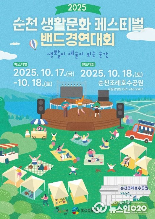 (뉴스인020 = 김성길 기자) (재)순천문화재단은 오는 17일부터 18일까지 조례호수공원 일원에서 ‘제6회 순천생활문화페스티벌’을, 18일에는 ‘제5회 순천생활문화 밴드 경연대회’를 개최한다.