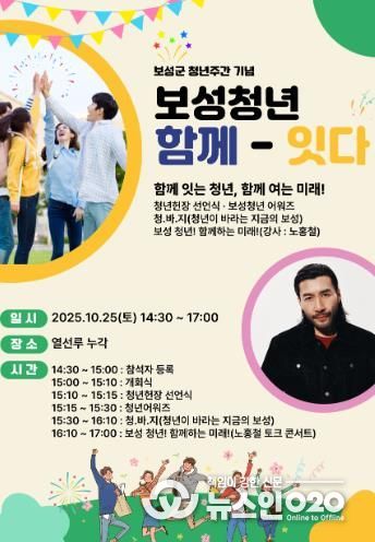 ‘보성 청년 함께-잇다’ 프로그램에서는 김철우 보성군수와 지역 청년이 소통하는 ‘청바지(청년이 바라는 지금의 보성)’, 청년들의 성취를 격려하는 ‘청년어워즈’, 방송인 노홍철과 함께하는 ‘토크콘서트’가 마련된다.