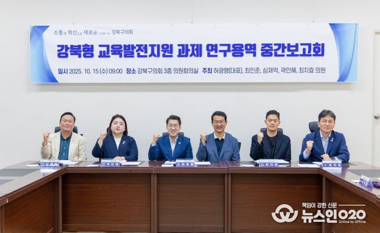 (뉴스인020 = 김성길 기자) 강북구의회 의원연구단체인 ‘강북형 교육발전지원 연구회’ (대표의원 허광행)는 지난 10월 15일 의회 3층 의원회의실에서 중간보고회를 열었다.