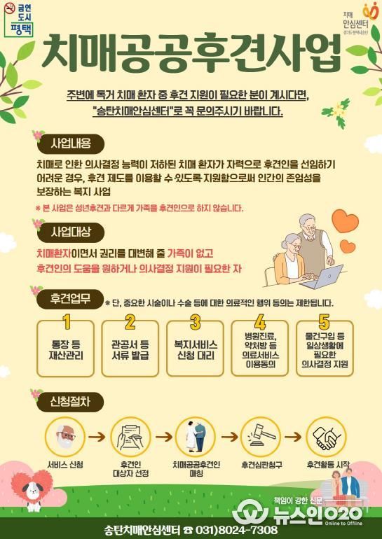 (뉴스인020 = 김성길 기자) 평택시 치매안심센터는 의사결정능력 저하로 어려움을 겪는 치매 환자의 인간 존엄성을 보장하고자 ‘치매공공후견제도’를 운영한다고 16일 밝혔다.
