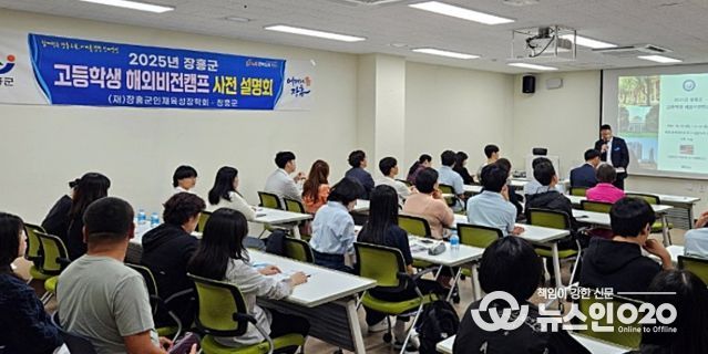 (뉴스인020 = 김성길 기자) 장흥군은 15일 (재)장흥군인재육성장학회 주관으로 장흥고등학교에서 ‘2025년 장흥군 고등학생 해외비전캠프 사전설명회’를 개최했다.