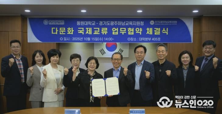 (뉴스인020 = 김성길 기자) 경기도광주하남교육지원청은 10월 15일 오후 2시, 동원대학교와 다문화학생의 건강한 성장과 글로벌 역량 강화를 위한 업무협약(MOU)을 체결했다.