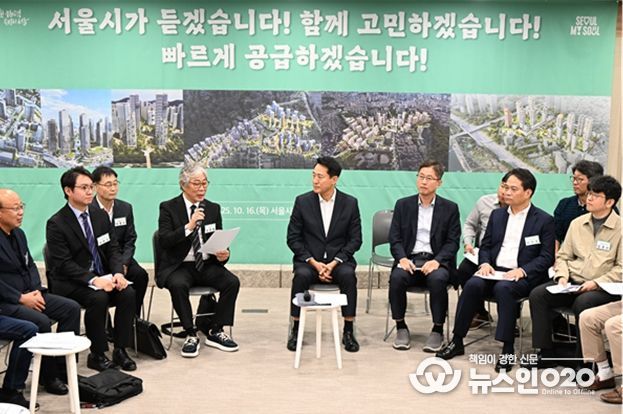 (뉴스인020 = 김성길 기자) 오세훈 서울시장이 16일 오전 10시 서울시청 간담회장(8층)에서 ‘서울시 정비사업연합회’ 소속 주민대표들과 ‘주택공급 활성화를 위한 민‧관정책협의회’를 개최했다.