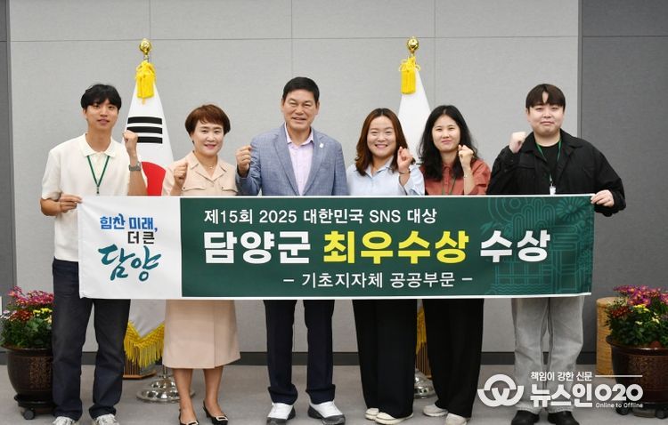 (뉴스인020 = 김성길 기자) 담양군이 지난 16일 열린 ‘제15회 대한민국 SNS 대상’에서 기초지자체 부문 최우수상을 받으며 3년 연속 쾌거를 달성했다.