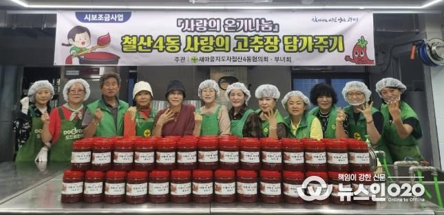 (뉴스인020 = 김성길 기자) 광명시 새마을지도자 철산4동 협의회와 새마을부녀회는 16일 광명시 채움부엌(공유부엌)에서 ‘사랑의 고추장 나눔 행사’를 진행했다.
