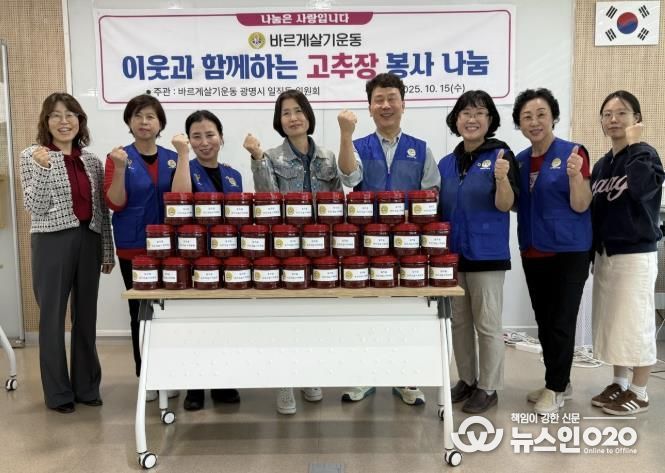 (뉴스인020 = 김성길 기자) 광명시 일직동 바르게살기위원회는 지난 15일 관내 어려운 이웃을 돕기 위해 ‘이웃과 함께 하는 고추장 나눔 봉사’ 활동을 실시했다.