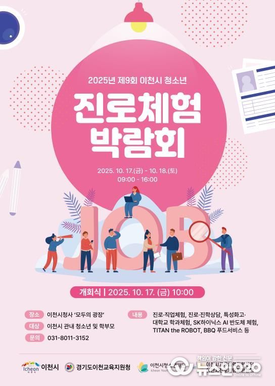 (뉴스인020 = 김성길 기자) 이천교육지원청은 10월 17일~18일 이틀간 이천시청 앞 광장 일대에서 이천시 청소년 진로체험박람회를 개최한다.