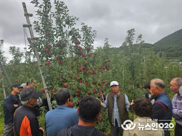 이번 견학은 곡성군 사과 재배농업인 30명이 참석한 가운데, 사과 다축 재배 기술과 과원 관리 기법을 현장에서 직접 보고 배우는 실질적인 교육의 장으로 마련됐다.