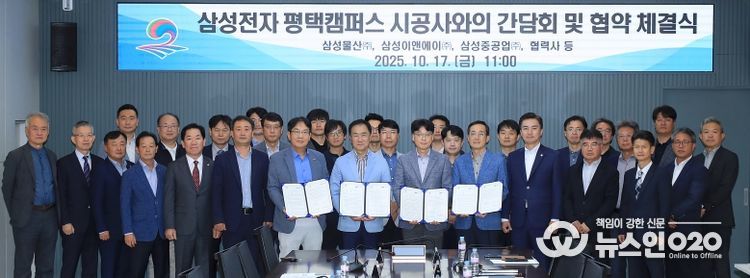(뉴스인020 = 김성길 기자) 평택시는 17일에 관내 시공 예정인 삼성전자 평택캠퍼스 대형시공사와 간담회 및 협약체결식을 개최했다.