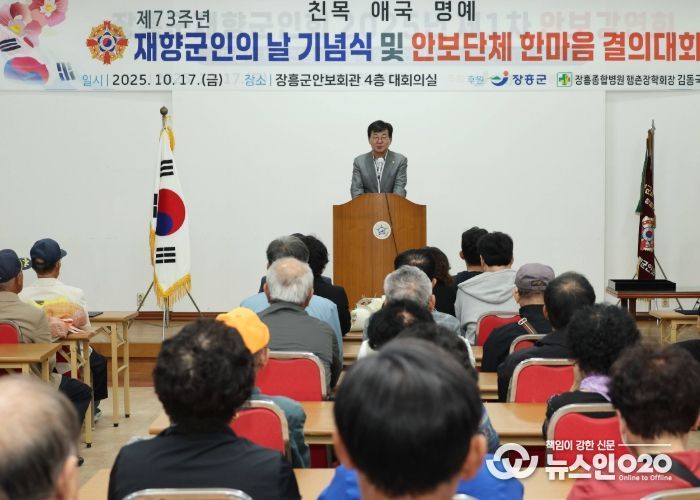 (뉴스인020 = 김성길 기자) 장흥군은 17일 안보회관에서 제73주년 재향군인의 날 기념식 및 안보결의대회를 개최했다고 밝혔다.