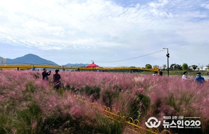 (뉴스인020 = 김성길 기자) 장성군 황룡강 가을꽃축제 이튿날인 19일, 강변 곳곳마다 활짝 핀 가을꽃들이 방문객을 반기고 있다. 특히 용작교, 황룡정원 방면 백일홍과 연꽃정원 코스모스, 문화대교 인근 핑크뮬리가 아름답다.