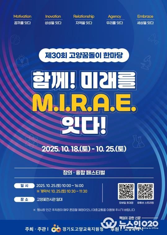 (뉴스인020 = 김성길 기자) 경기도고양교육지원청은 오는 10월 25일 오전 10시부터 오후 4시까지 고양꽃전시장 일대에서 ‘제30회 고양꿈돌이한마당 창의융합 페스티벌’을 개최한다.
