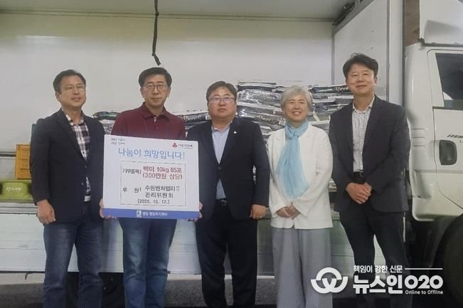 (뉴스인020 = 기자) 수원시 권선구 고색동 수원델타플렉스(산업단지)에 위치한 수원벤처밸리Ⅱ 지식산업센터 관리위원회에서는 지난 18일, 임직원 화합 및 소통의 장을 마련하기 위해 제5회 한마음 체육행사를 개최하고, 권선구 평동 행정복지센터에 300만원 상당의 백미(10kg) 85포를 후원했다.