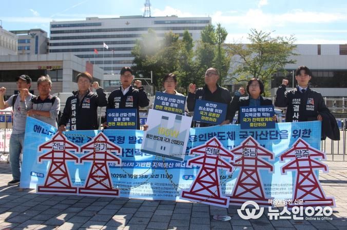(뉴스인020 = 김성길 기자) 송전선로 및 LNG발전소 건립반대 안성시 범시민대책위원회가 15일, 용산 대통령실 앞에서 열린 송전선로 반대 기자회견에 참여해 목소리를 보태고, 이재명 정부에 용인 반도체 국가산단을 위한 송전선 건설을 전면 재검토할 것을 요구했다. 기자회견에는 정효양 범시민대책위 위원장과 이용성 사무국장, 강우전 송전선로 분과위원장 등 범시민대책위와 안성시의회 황윤희·이관실 의원도 참여했다. 이들은 기자회견 후 국회 토론회도 참석, 용인 국가반도체산단을 위한 전력집중 문제를 함께 살폈다.
