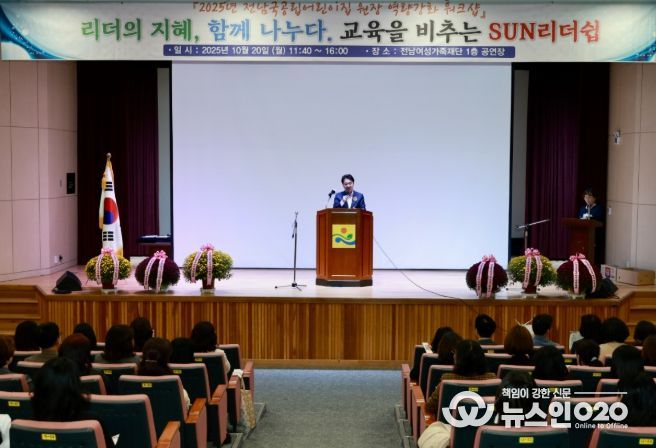 (뉴스인020 = 김성길 기자) 전라남도의회 김태균 의장은 10월 20일 전남여성가족재단에서 열린 2025년 전라남도국공립어린이집연합회 원장 역량 강화 워크숍에 참석했다.
