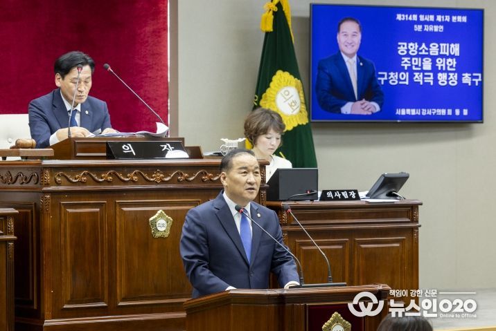 (뉴스인020 = 김성길 기자) 서울 강서구의회 최동철 의원(더불어민주당, 화곡 1, 2, 8동)은 제314회 임시회 5분 자유발언을 통해 공항소음 피해 주민을 위한 구청의 적극행정을 촉구했다.
