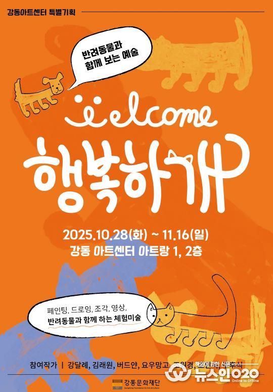 (뉴스인020 = 김성길 기자) 강동문화재단은 오는 10월 28일부터 11월 16일까지 강동아트센터 아트랑에서 반려동물과 함께 예술을 경험할 수 있는 전시 《행복하개展》을 선보인다.