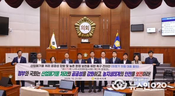 (뉴스인020 = 김성길 기자) 나주시의회는 21일 제273회 임시회 제2차 본회의를 열고 ‘산업폐기물 처리 공공성 강화 및 농촌 환경 보전을 위한 촉구 건의안’을 채택했다.