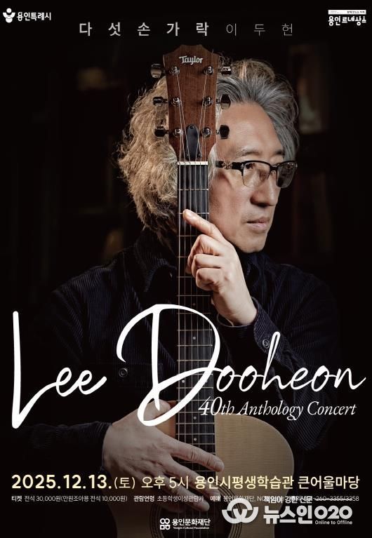 (뉴스인020 = 김성길 기자) (재)용인문화재단은 오는 12월 13일 오후 5시, 용인시평생학습관 큰어울마당에서 ‘다섯손가락 이두헌 40th Anthology Concert’를 개최한다.