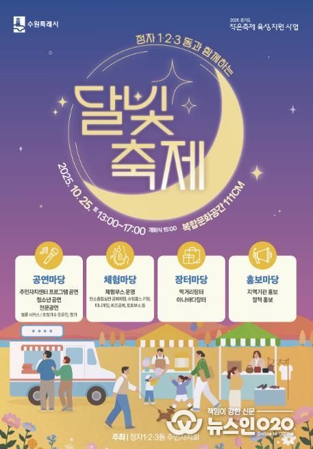 (뉴스인020 = 기자) 수원시 장안구 정자2동 주민자치회는 오는 25일, 오후 1시부터 복합문화공간 111CM에서 ‘정자1·2·3동과 함께하는 달빛축제’를 개최한다.