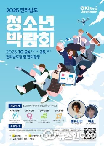 (뉴스인020 = 김성길 기자) 전라남도는 청소년이 행복한 전남 실현을 위해 도가 주최하고 (재)전남도청소년미래재단이 주관하는 ‘2025 전라남도 청소년박람회’를 24일부터 2일간 전남도청 앞 도민광장에서 개최한다.