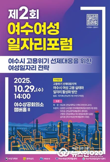 특히 이번 포럼은 지난 8월 28일 여수시가 ‘고용위기 선제대응지역’으로 지정된 이후 처음 열리는 포럼으로, 지역 고용위기 극복을 위한 여성 일자리 정책 방향을 심도 있게 모색하는 뜻깊은 자리가 될 예정이다.