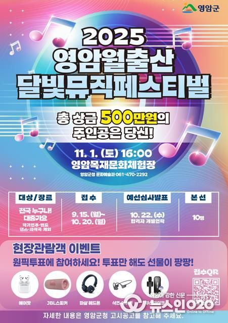 영암군(군수 우승희)이 11/1일 오후 4시 목재문화체험장에서 ‘2025 영암 월출산 달빛 뮤직 페스티벌’을 개최한다.