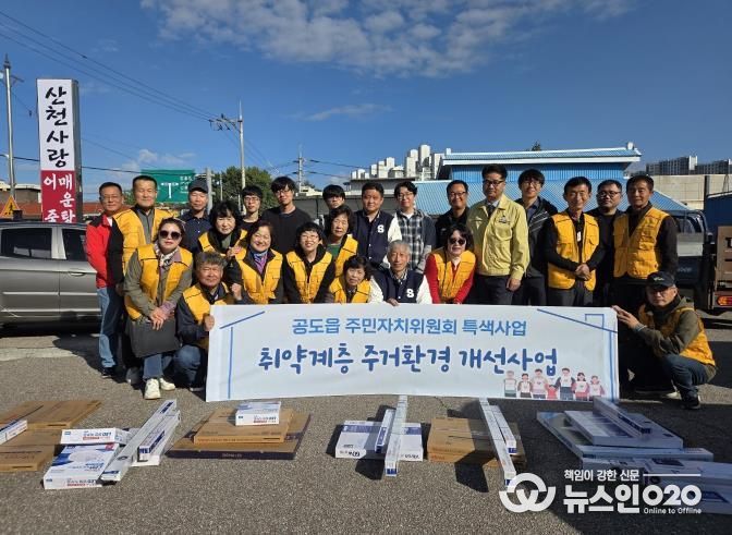 (뉴스인020 = 김성길 기자) 공도읍 주민자치위원회는 지난 22일 한국폴리텍대학 반도체융합캠퍼스, 공도읍 행복마을관리소와 협력하여 “취약계층 주거환경 개선사업”을 실시했다.