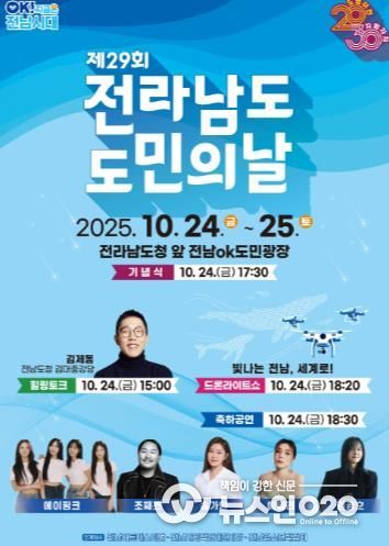 (뉴스인020 = 김성길 기자) 전라남도가 200만 도민이 함께 소통하고 화합하는 제29회 전라남도 도민의 날 기념행사를 24일부터 이틀간 전남도청 앞 OK도민광장에서 개최한다.