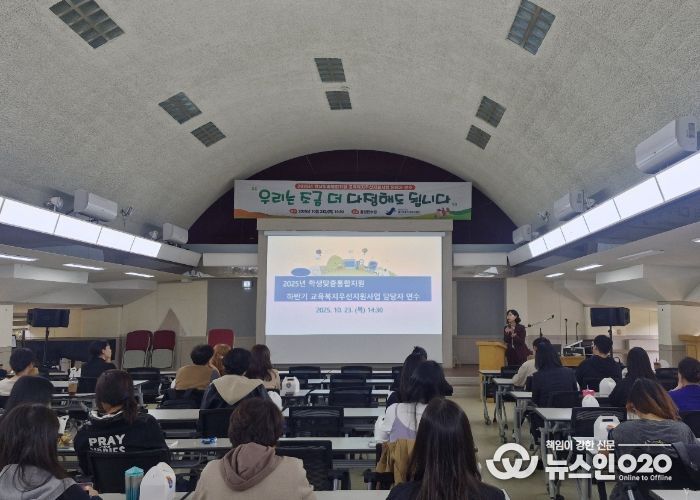 (뉴스인020 = 김성길 기자) 경기도파주교육지원청은 10월 23일 홍원연수원에서 관내 초·중·고등학교 교육복지 담당자 65명을 대상으로 ‘우리는 조금 더 다정해도 됩니다’ 라는 주제로 연수를 실시했다.