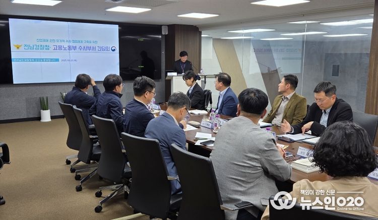 (뉴스인020 = 김성길 기자) 전남경찰청은 10월 23일 전남경찰청에서 광주지방고용노동청 (목포·여수지청)과 산업재해 수사 실무자들 간 간담회를 개최하고 상호 협업체계를 구축했다.