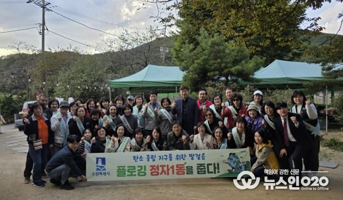 (뉴스인020 = 기자) 수원시 장안구 정자1동은 통장협의회와 함께 지난 23일, 광교산 일원에서 쓰레기 감량을 위한 환경 캠페인과 함께 ‘줍깅(줍다+조깅)’ 활동을 진행했다.