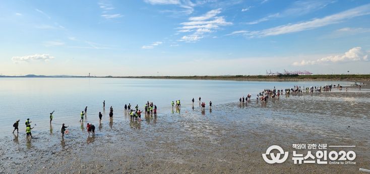 (뉴스인020 = 김성길 기자) 시흥시는 10월 24일 거북섬 해안 덱과 갯벌 일원에서 열린 ‘2025 시화호 갯벌 맨발걷기 페스타’가 400여 명의 시민이 참여한 가운데 성황리에 마무리됐다고 밝혔다.