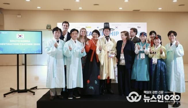 (뉴스인020 = 김성길 기자) 스페인을 방문한 용인특례시 대표단이 세비야에서 열린 '관광혁신 서밋(Tourism Innovation Summit) 2025'에서 한복 차림으로 행사에 참여하고 갓과 '호작도' 등을 선물해 스페인 현지의 큰 관심을 끌었다.
