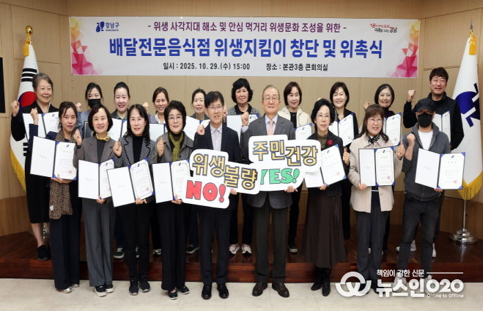 (뉴스인020 = 김성길 기자) 꿈이 모이는 도시, 미래를 그리는 강남구가 전국 자치단체 중 처음으로 배달전문음식점을 대상으로 위생 상태를 점검하는 ‘위생지킴이’를 창단하고, 10월 29일 구청에서 위촉식을 개최했다.
