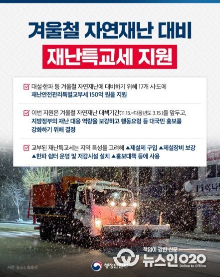 (뉴스인020 = 김나현 기자) 겨울철 자연재난 대비 재난특교세 지원